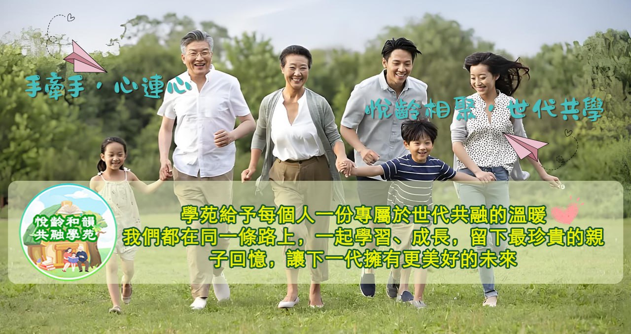 在悅齡和韻共融學苑,每一位走進來的人,不論是中年、長者,或是親子家庭,都能在這裡找到持續學習、彼此陪伴、共同成長的溫暖,我們的宗旨是以教育為實踐,公益為使命,透過多元課程與共學平台,讓每個人都能重新看見自我價值,活出屬於自己的精彩!